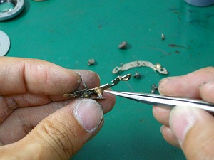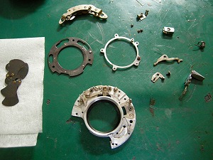 スローガバナーのゼンマイ部分が変形して、動きが悪くなっていましたので、修正して組み立てます。 |