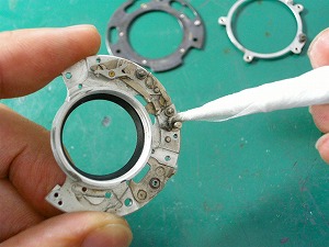 カメラ修理は同じ作業の繰り返しをシャッターユニット、絞り、巻き上げ、巻き戻し、ヘリコイド、全ての箇所にしていくのです。 |