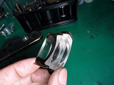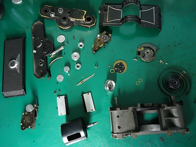 レンズ部分の整備が終わりましたら、巻き上げ部分の清掃とグリス入れ替えを行ないます。 お客様から巻き戻しがかなり重いとお伺いしておりましたが、グリス入れ替えにより解消いたします。 |