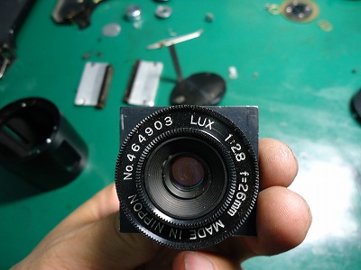 レンズ清掃を行ないます。 絞り羽根に油の滲みがあり、こちらも清掃を行ないます。 |