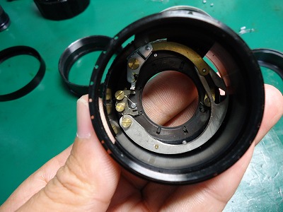 まずはマウント部、前玉、後玉を取り外し修理開始です。 |